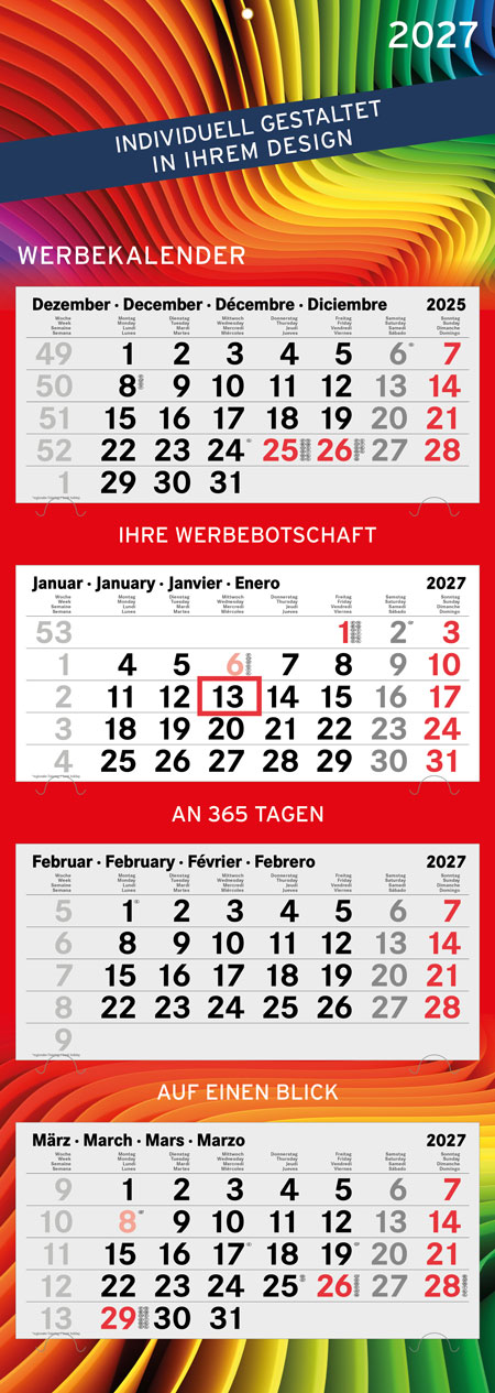 | Mehrblock-Monatskalender, 320 x 900 mm gesamt (postversandfähig) | |